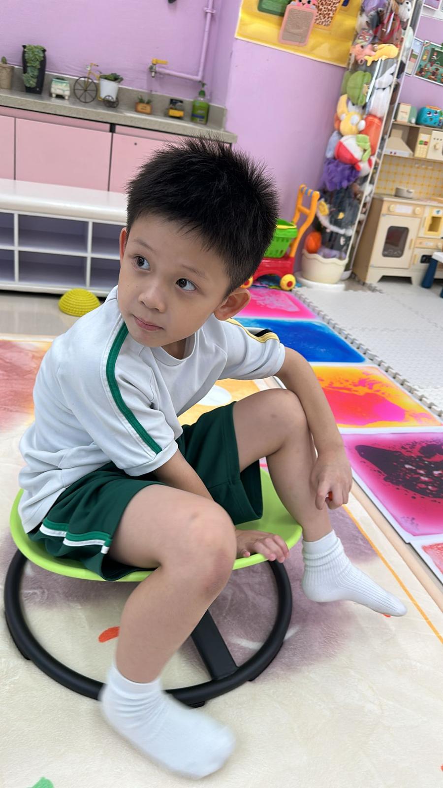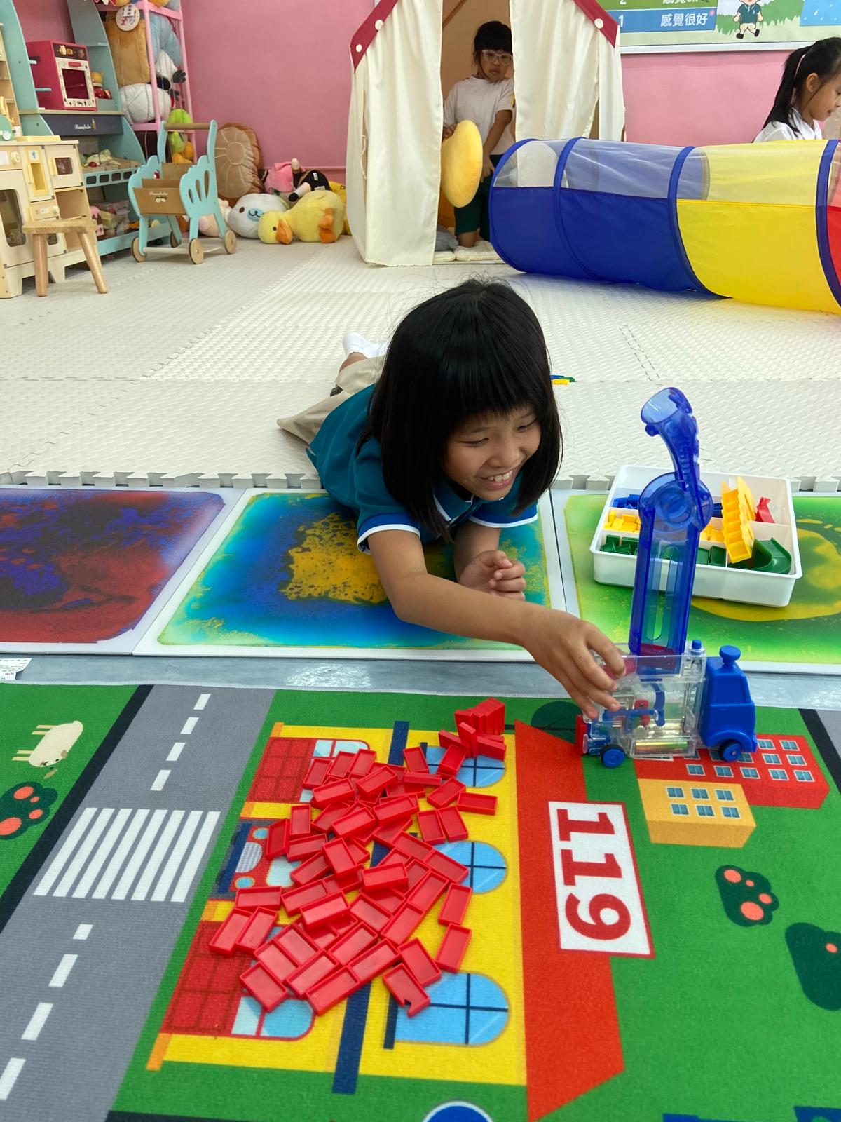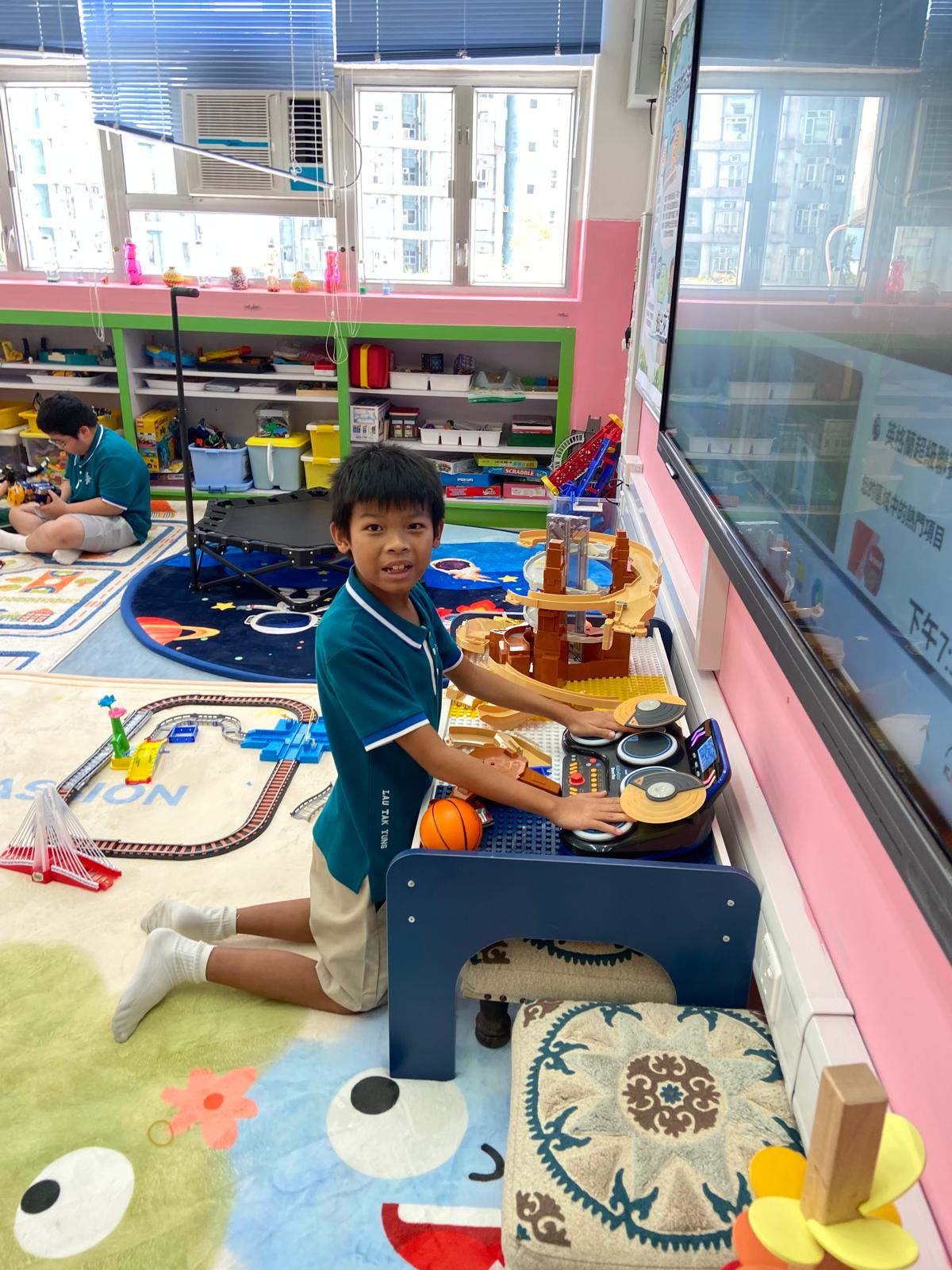 學生會在第一、第二個小息及午息期間,被安排前往遊戲室與同學們一起玩耍。遊戲室提供不同種類的玩具,玩具的類型都按有不同特殊學習需要而挑選,旨在促進同學之間的互動與合作,讓他們在輕鬆愉快的環境中放鬆心情。
